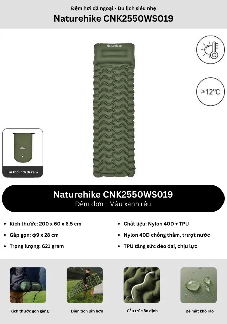 Những sản phẩm cùng loại với Đệm hơi cắm trại siêu nhẹ Naturehike CNK2550WS019 - FC01