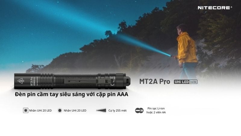 Đèn pin cầm tay nhỏ gọn MT2A Pro, cũng là mẫu đèn đầu tiên. Được Nitecore xử lý chất lượng ánh sáng cực cao, hiệu quả. An toàn trong mọi môi trường, nhu cầu sử dụng thực tế.