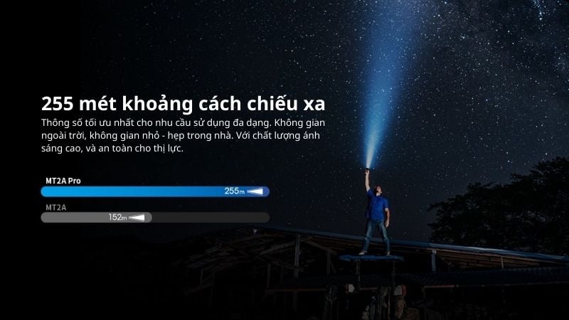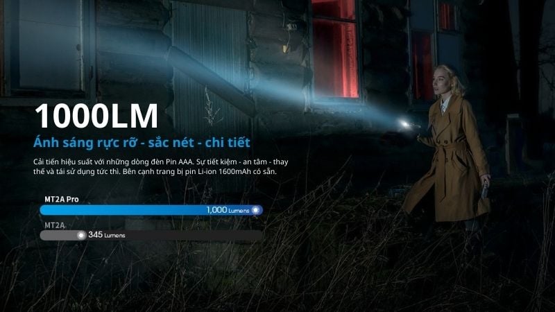 Đèn pin cầm tay nhỏ gọn MT2A Pro, dòng Multi Tasking. Hướng tới khả năng ứng dụng đa năng, hiệu quả cao với 1000LM, cự ly chiếu xa 255 mét. Không phải một thông số mạnh, nhưng là hiệu quả tối ưu cho ngoài trời. Indoor với không gian hẹp, cự ly quan sát gần trên thực địa.