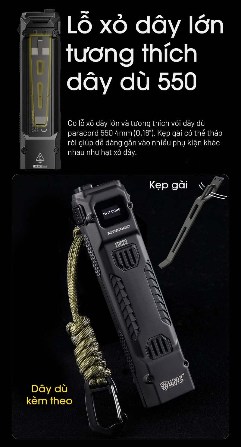 Xác định vai trò của một sản phẩm mang hàng ngày (EDC). Thiết kế mẫu EDC29 thuộc Lineup sản phẩm Nitecore EDC hàng đầu của hãng. Thiết kế Slim Fit của sản phẩm, mang tới sự thân thiện hơn vs người dùng. Với những không gian mang đồ, hay trên chính bộ quần áo của mình.
