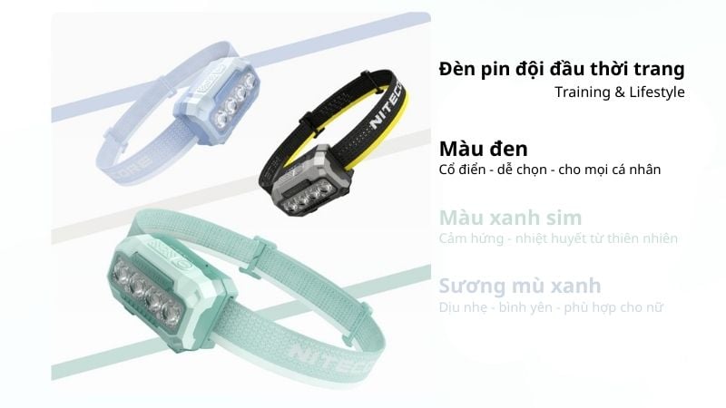 Nitecore HA23 UHE - Đèn pin kỹ thuật ngoài trời đeo trán thân thiện với 03 lựa chọn màu sản phẩm. Cho phép khách hàng thể hiện cá tính riêng biệt với một sản phẩm cá nhân. Mang và sử dụng trong mọi hoạt động khác nhau.